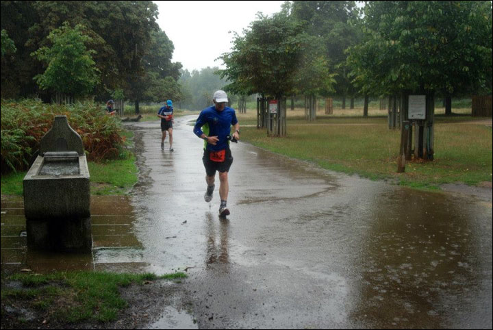I trundled along though, at first trying to tip toe around the rapidly forming puddles but in the end just gave up as was utterly soaked to the bone. Wasn't much running up the "big hill" in Richmond Park but kept up some fairly decent pace to try to get under 4:15 which I just did, 4:13 which was a PB for a trail marathon, so overall was pleased with that. Could have been better, but for a week after a 100 mile run on damaged legs, I think I would take that any time!