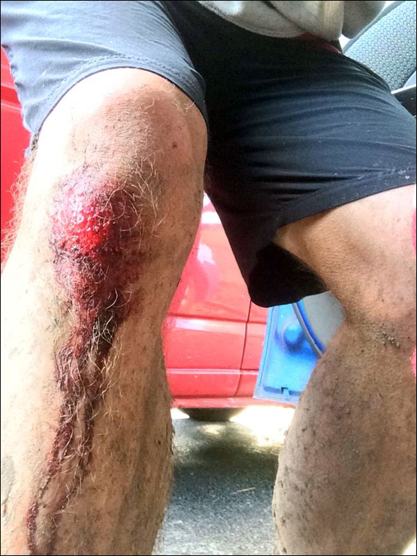 Got changed quickly and studied the knee, which looked rather worse than I thought it was (but much, much better when cleaned up!) and went back to the finish to cheer in folk and wait for Rachel. All in all a good day out, event is too large now for that course and those facilities, so hope they reduce the numbers for next year.