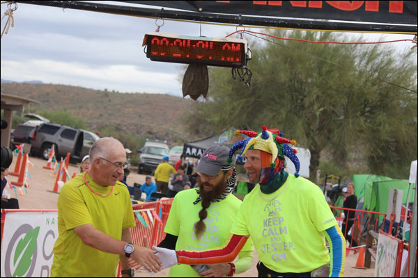 Javalina 100 done! Buckle #24 earned! This was a tough one, I like the desert and one set in the Sonoran just outside of Phoenix in the winter time seemed ideal for a pasty faced English chap who doesn't like the heat much. The near cardiac I had when I looked that the long range weather forecast and saw 93F was a surprise, last Autumn at Bear it was -9C and Yellowstone -12C, luckily it wasn't quite that hot but was 72F, at 0330 and was probably in the mid 80s by 0900... this was set in McDowell Mountain Regional park 6 loops of 15 odd miles and a bonus short lap to finish. The plan was pretty simple, go out like a bat out of hell before it got too hot and see how things go... and for the first loop was just fine 2:20 or so, 8.5 miles up the hill, 6.5 down, through the "sandy section", "the bloody rocky section" and then the "nice section" each lap you switch direction so you see everyone else...