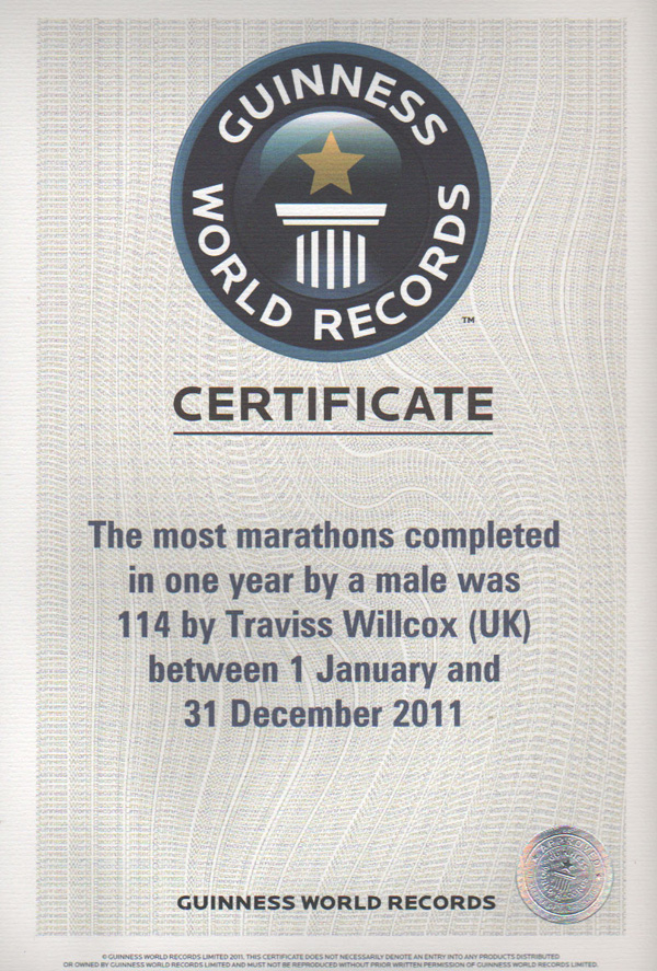 Not that Traviss is a stranger to records - he has been slowly and quietly breaking them for several months, and now holds no fewer than seven! But this was the big one that he really wanted. And after 51 weeks of often painful effort, he was forced to work very hard for the final accolade, running eight marathons in the final eight days of 2011, with his sole rival for the record, American lawyer Larry Macon, also in the field.