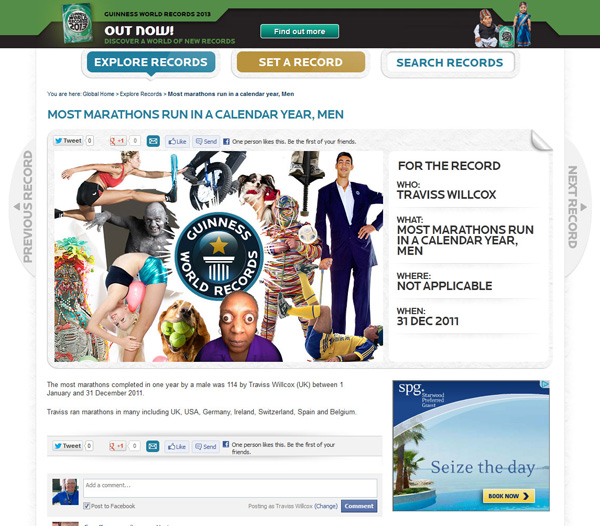 Most marathon events completed in a year: 114 (World Record) |